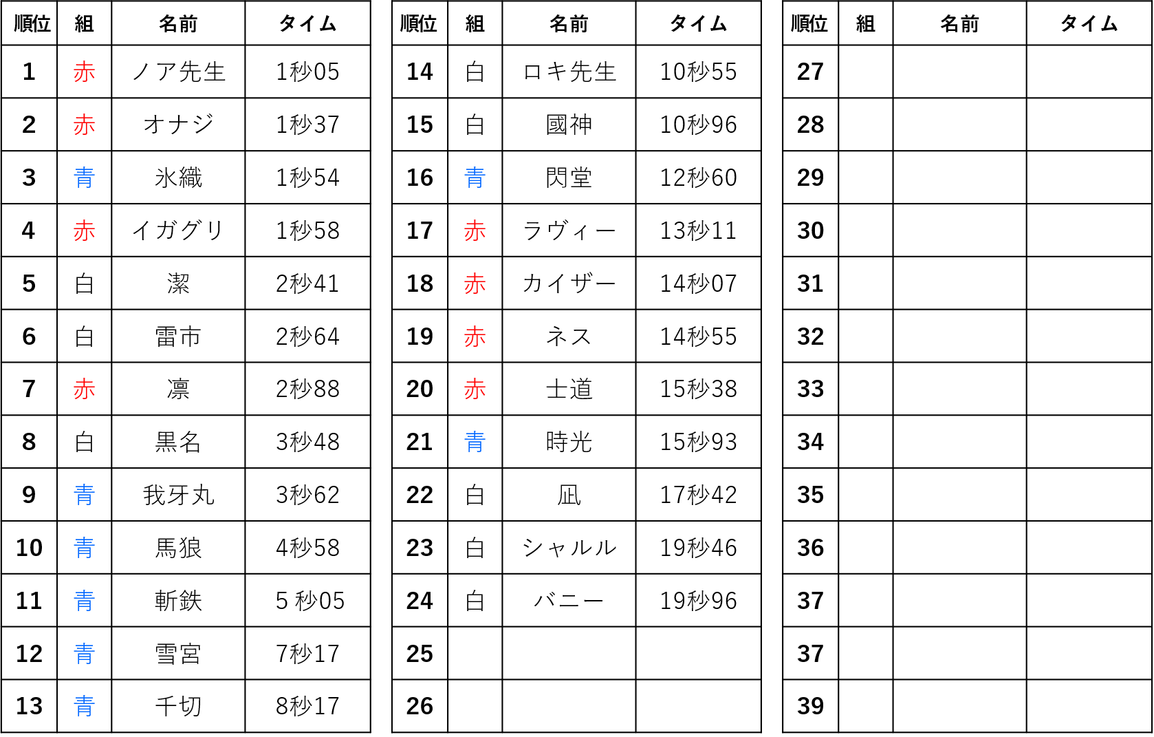 赤組なんか早いのと遅いので二極化してるな…