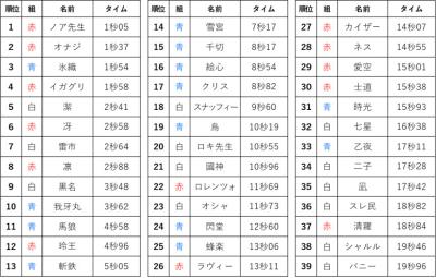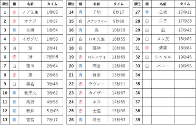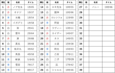 1位 赤組 士道君 15秒38
