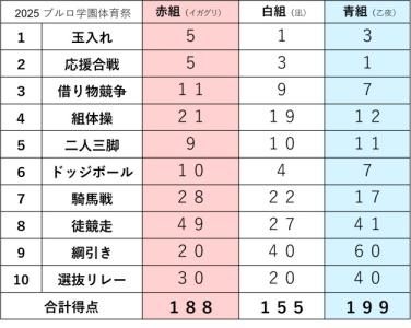 「そして2位は赤組!188点!」