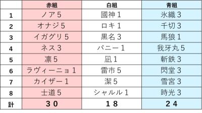 ずっと赤が強かったからまさかの青組優勝で驚いたわ