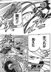 そして、中傷のニワトリが、純粋な野蛮な暴力と生存本能のみを頼りに、ゲッター線が通る一瞬の隙間を肉塊の中央へと突入。