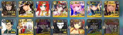 万遍なく上げる派だから絆10以上の15騎と最近加入でまだ絆6の藤堂パフェエリ終わエリ以外の延べ355騎が絆7~9の弊デア、無事死亡