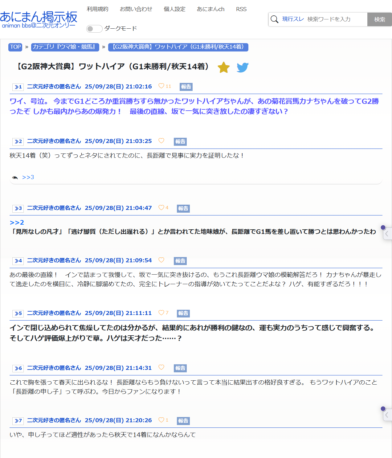 あにまん民が重賞勝ってるだけでようやりすぎとるから…