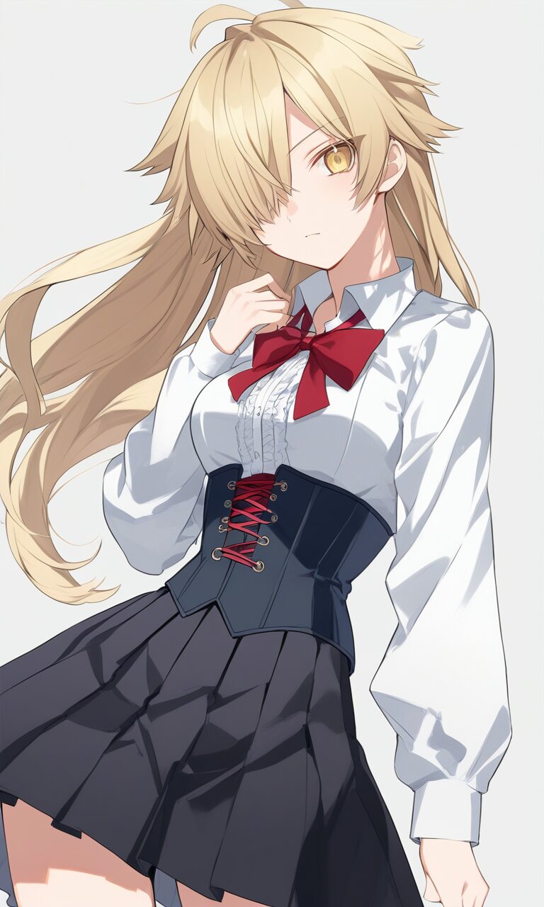 少し身長高めで金髪ロング、目も黄色で左目がメカクレ