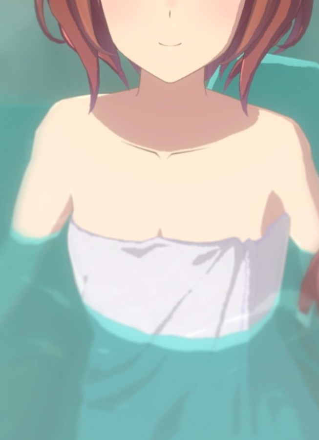 あまり多くはない胸肉をバスタオルでぎゅっと抑えたことで生まれるささやかな谷間…