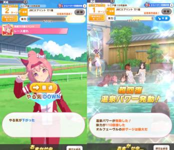 その中にある"育成目標達成時の獲得ステータスアップ"の温泉を掘削することで入浴券効果持続ターン(2ターン)と目標レースが重なったときメチャクチャ取得スキルポイント量が跳ね上がるんだよね凄くない?