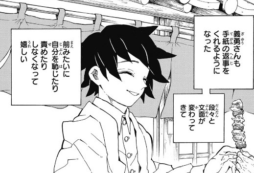 宇髄には泣いて喜ばれたし、炭治郎や不死川からも祝いの手紙が届いた。