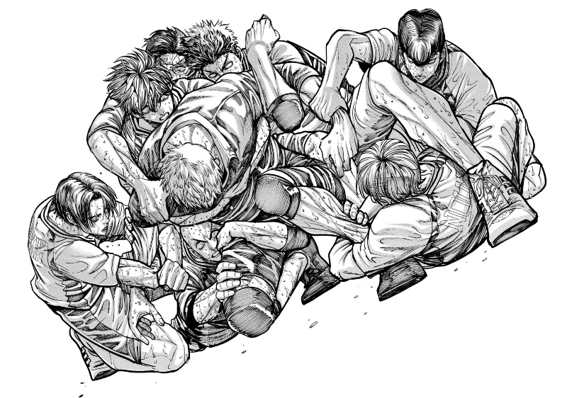 格闘漫画はそれこそ技名もあって動きの型もあって、おまけに直撃すればルール的な判定でも決着って瞬間があるから見開きやりやそう