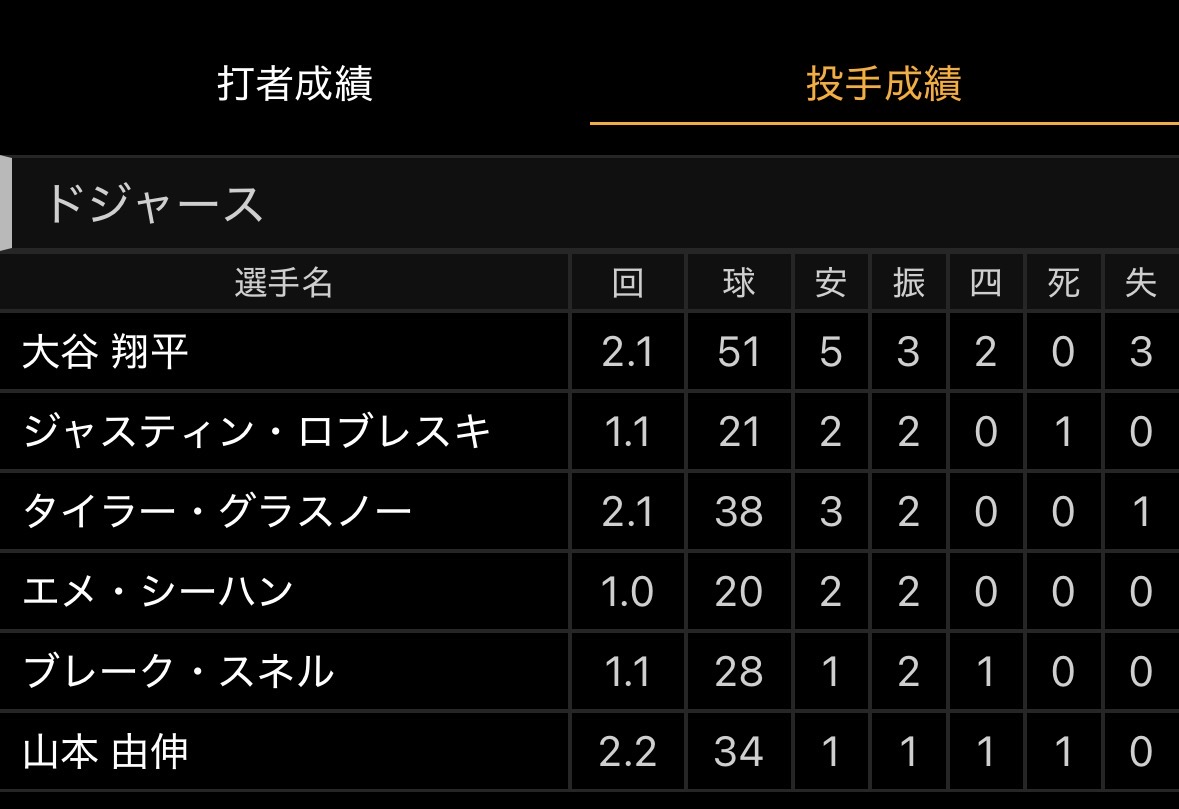 今日の試合前の時点で、大谷で勝った試合1つで山本で勝った試合2つだったところに大谷のフル稼働で補正かかってたMVPレースだったので山本がMVP候補筆頭になりそうですね