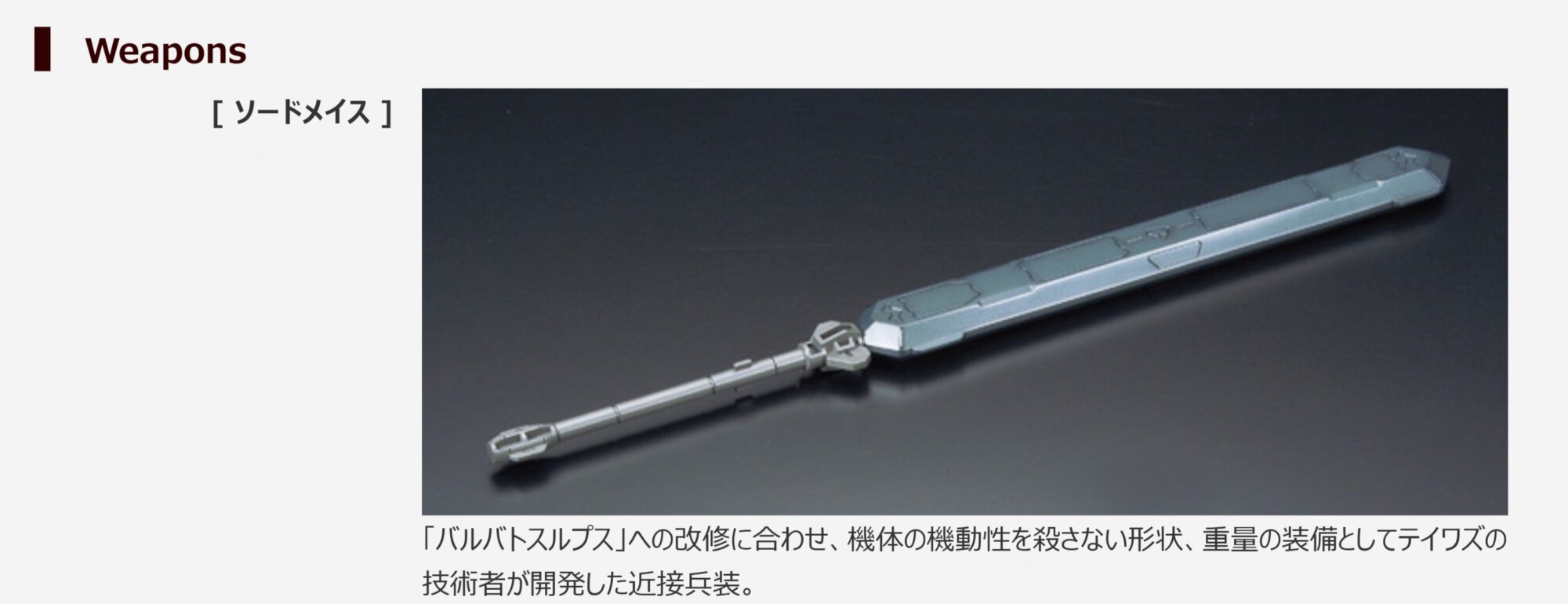 共通点を見出すなら切れ味じゃなくてメイスよりも軽い質量で敵機を潰せるってことくらいかな