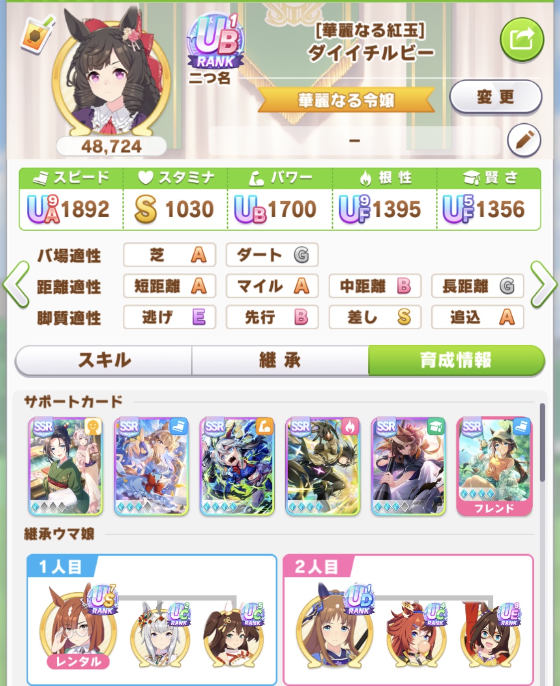 「やっぱステゴの固有ボーナス馬鹿に出来ねえな…」と「でも長距離育成で根性入れる余裕はねえな…」を行ったり来たりしている