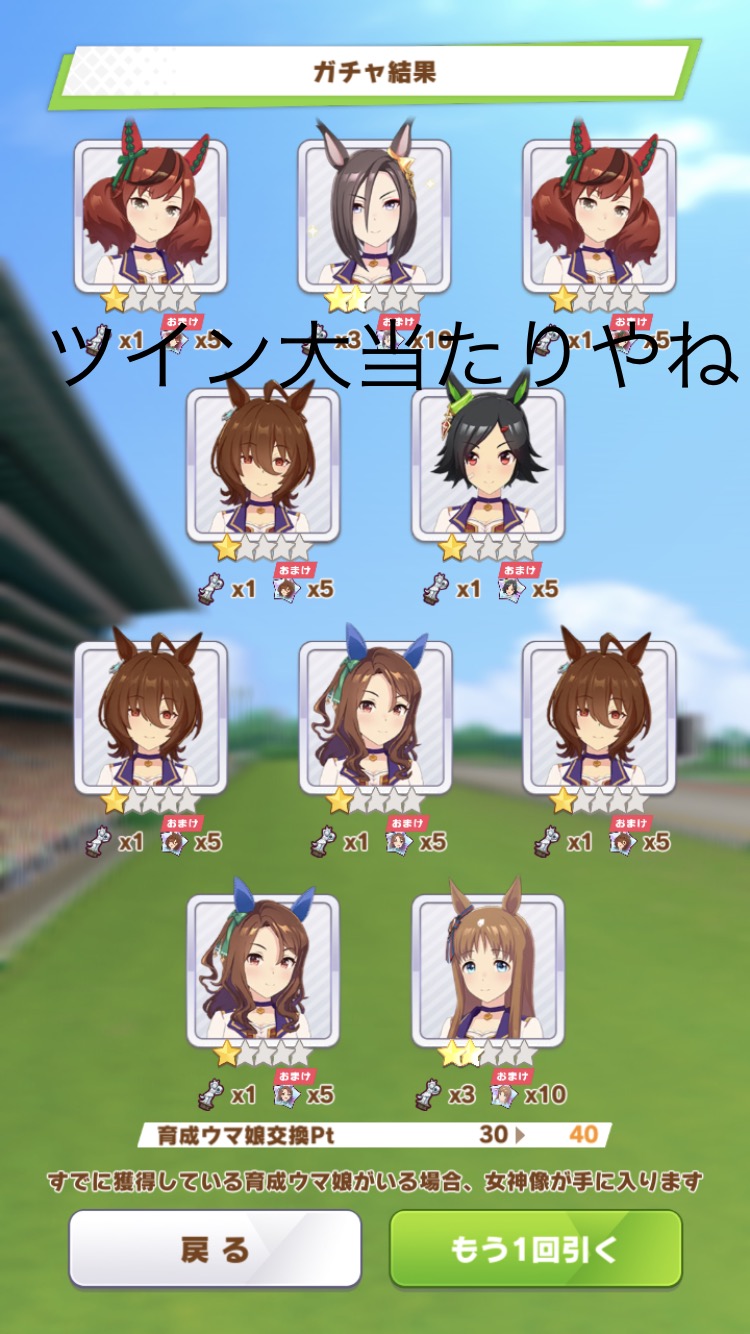 月が変わったから蹄鉄交換で単発チケット貰えるで