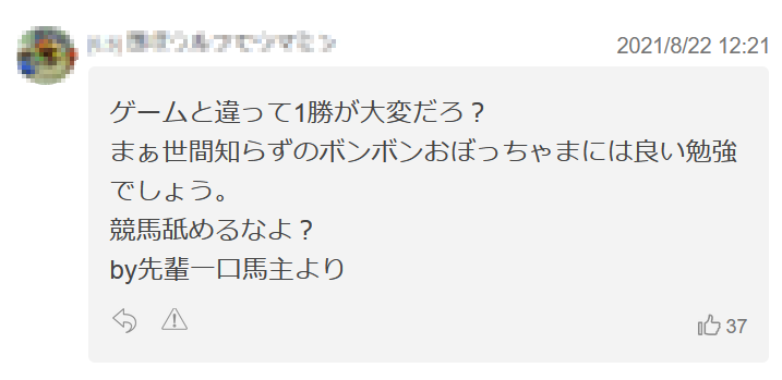 一口馬主がガチの馬主に喧嘩売るなんて刺激的でファンタスティックだろ