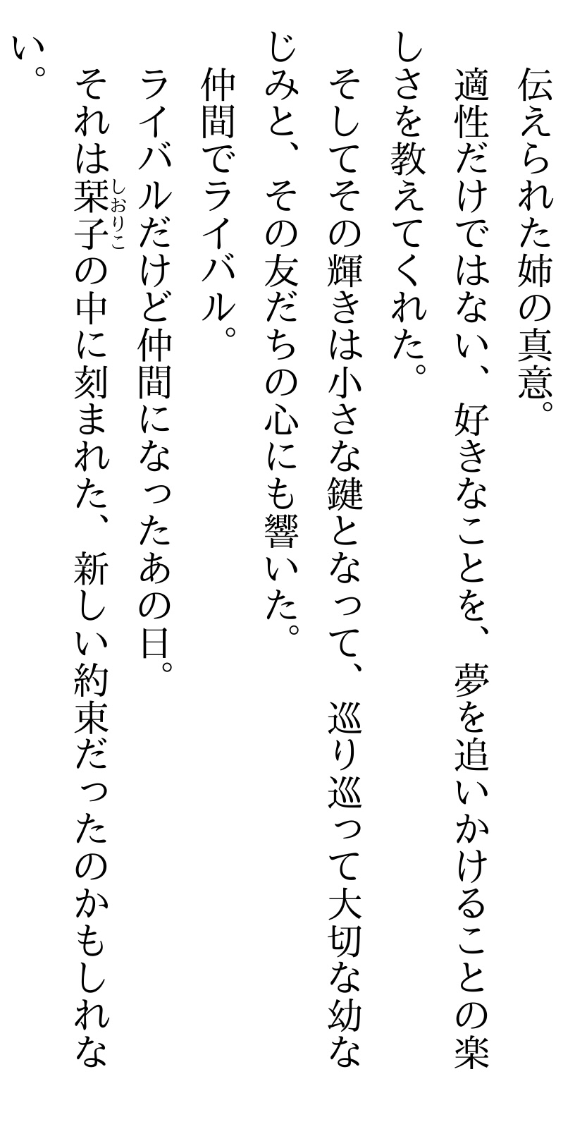 ストレートに言うと「映像で見たかった」が真っ先に来たかなぁ、いや最近えいがさき見たから脳内再生はかなり余裕だけど。
