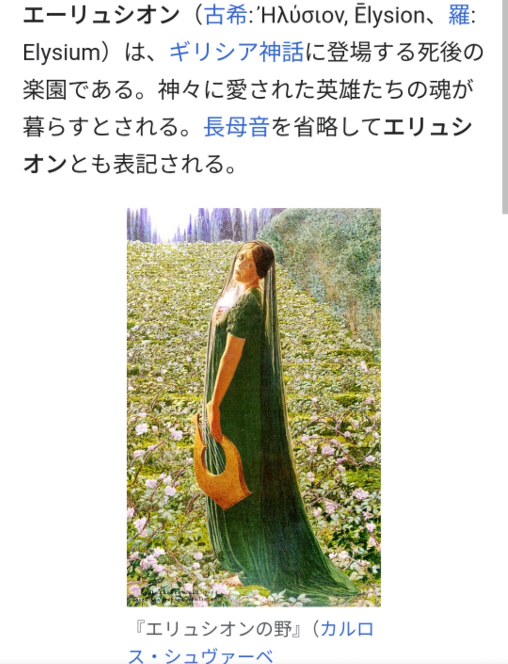 神話の楽園からとられたのがエリシアって名前だったはずだぞ
