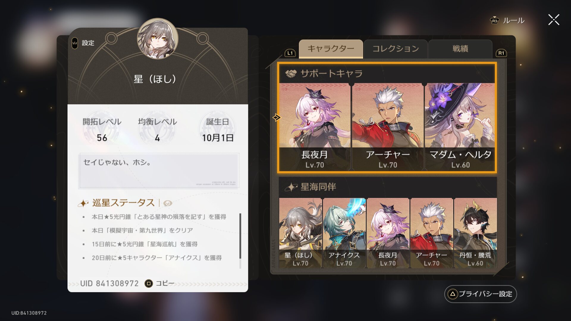 ストーリーたのしくてついつい列車に帰らず・・・マジかちゃんと戻るべきだったなぁ。ついぞ星は羅刹に会わぬままか。ちゃんと顔を見て丹恒が世話になったとお礼したかった。やらかしたなぁ