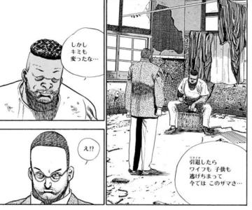 キー坊と戦ってな…凶獣から一人の格闘家になったんだよ でもただの格闘家では銃には勝てないんだよ モンキー・リアリティなんだよ