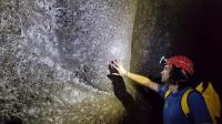 この洞窟内部は太陽光が一切届かないんスけど代わりに洞窟を作った源である硫黄分を多く含む湧き水が流れてて洞窟の壁や床にはこれを栄養にする硫黄酸化細菌が作る白いバイオフィルムが広がっててこのバイオフィルムを食べて生きるユスリカ類が大量発生してるんだよね クモたちはこのユスリカを主な獲物として食べてて「肉食」ではなく“間接的な微生物食”という独自の食物連鎖が成立してるらしいよ