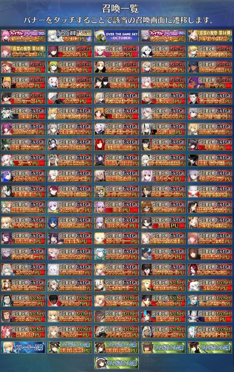 まず引きたい鯖のバナーを頑張って見つけるところから始まるガチャ画面とか前代未聞過ぎるだろ