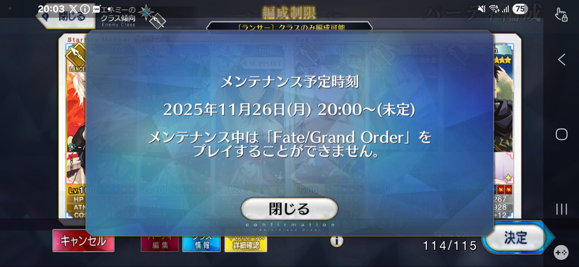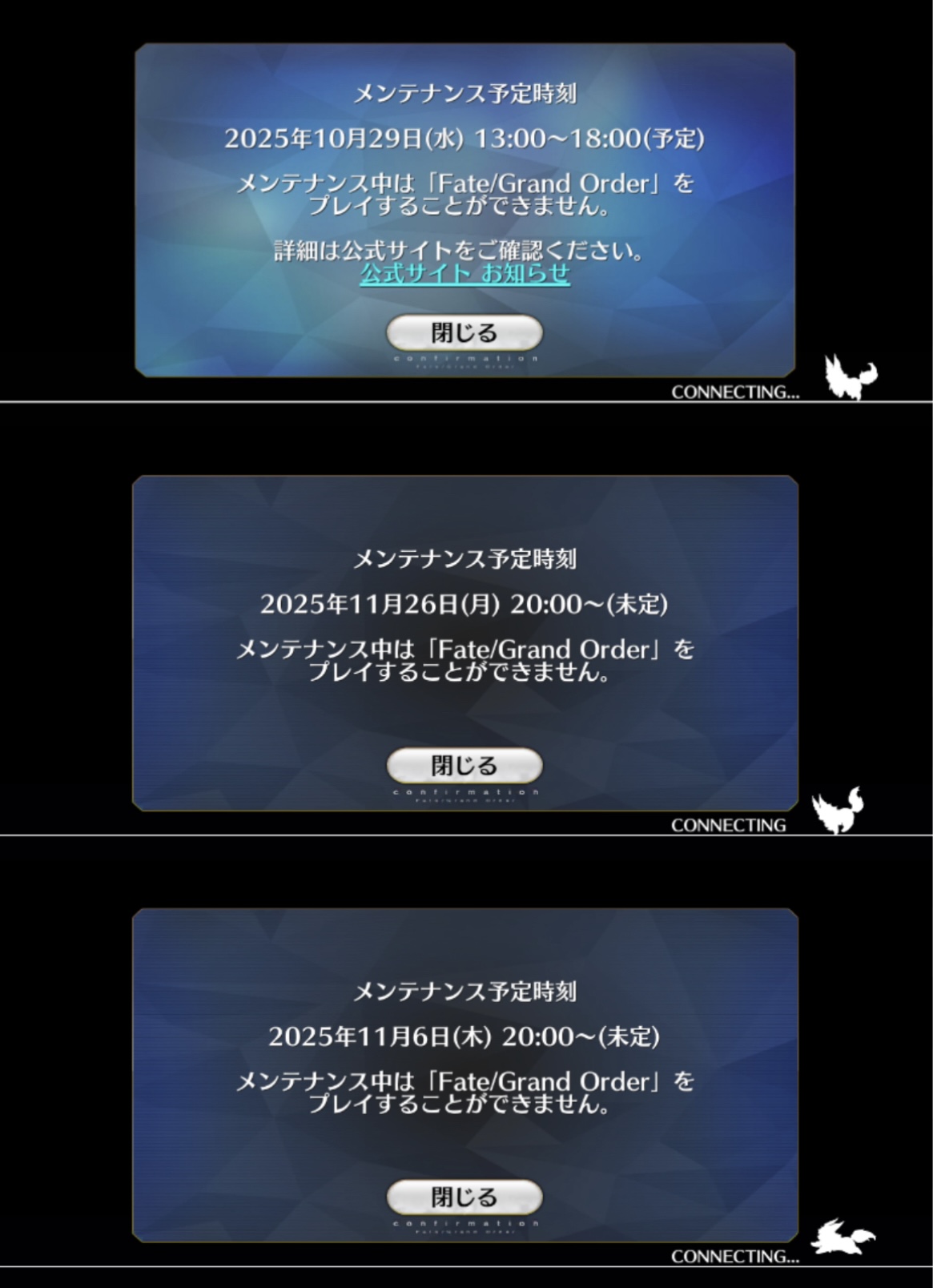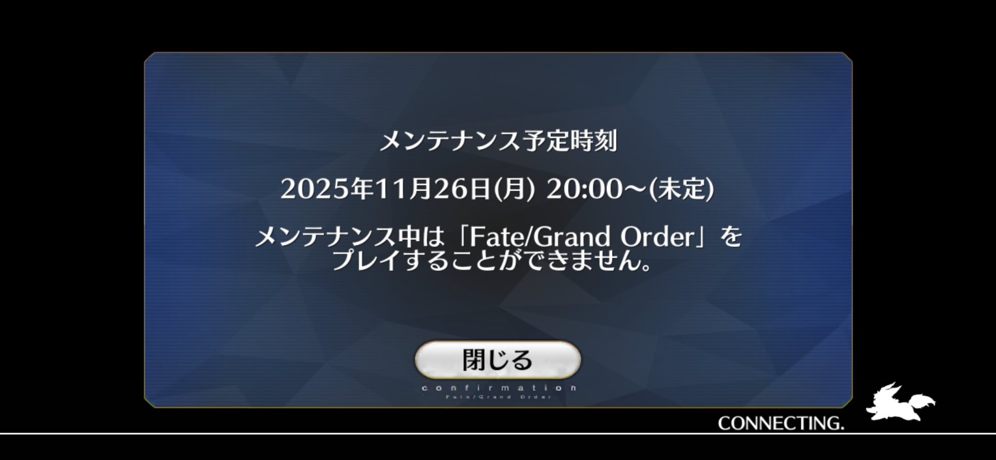 一回閉じる押したら11月6日のメンテって表示された