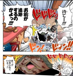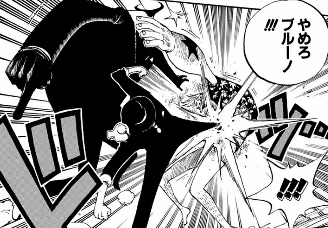 ・ルッチとジャブラの煽り合いを5年ぶりの再会じゃあねェかァ〜!と制止