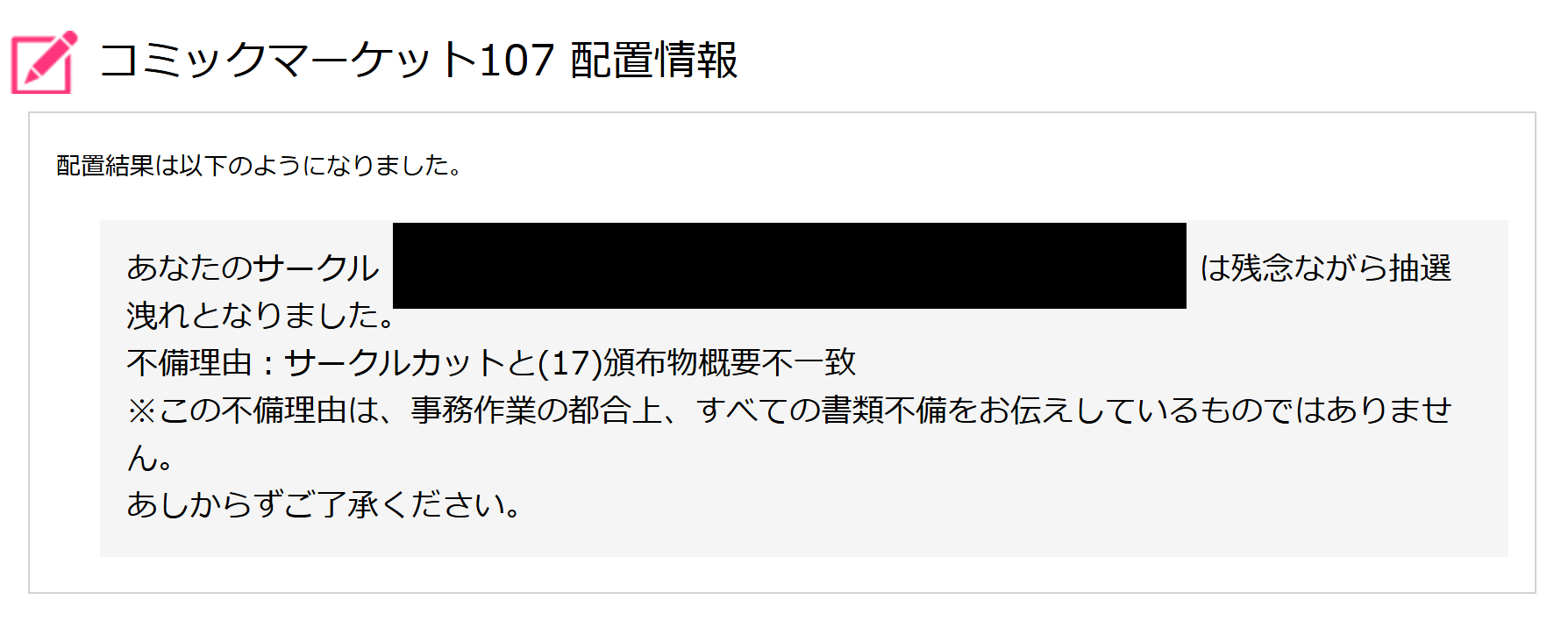 コミケ…聞いています 初出展するにあたって2、3回落ちることはザラだと