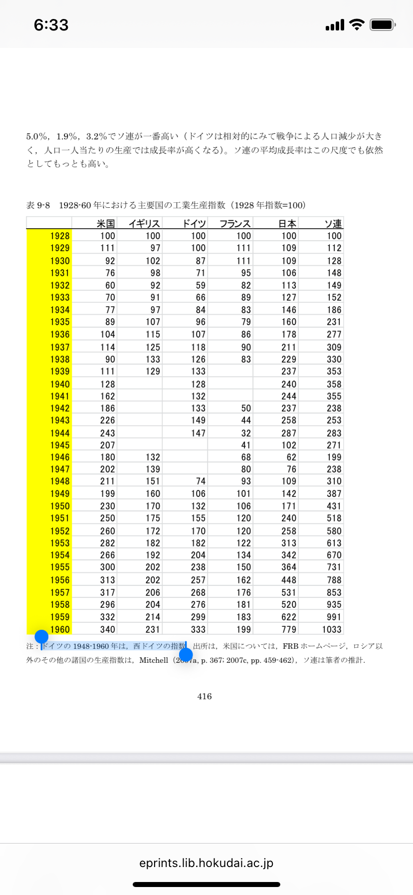 戦争で大勢死んで猛爆撃を受けた上で西ドイツ単体の1948年の統計より1932〜1933の工業力が下な所