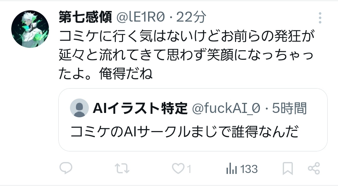 133表示しかされてないツイートでスレ立て…誰得なんだ