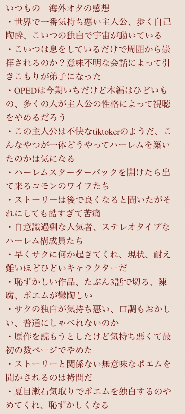 逆にオタクを本心では見下しているがリア充にもなれない半端者にはウケてるんだと考察したんだよね - 135二次元好きの匿名さん25/11/08(土) 17:51:24