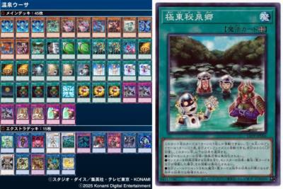 「温泉で入浴中のアポロウーサ」デッキで参加します。極東秘泉境を貼って戦闘耐性付きウーサの盤面を作ります。