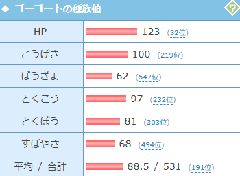 A95が足引っ張ってるんだろうとはわかるけどじゃあA下げるかって言われたら違う感じがする種族値だな…