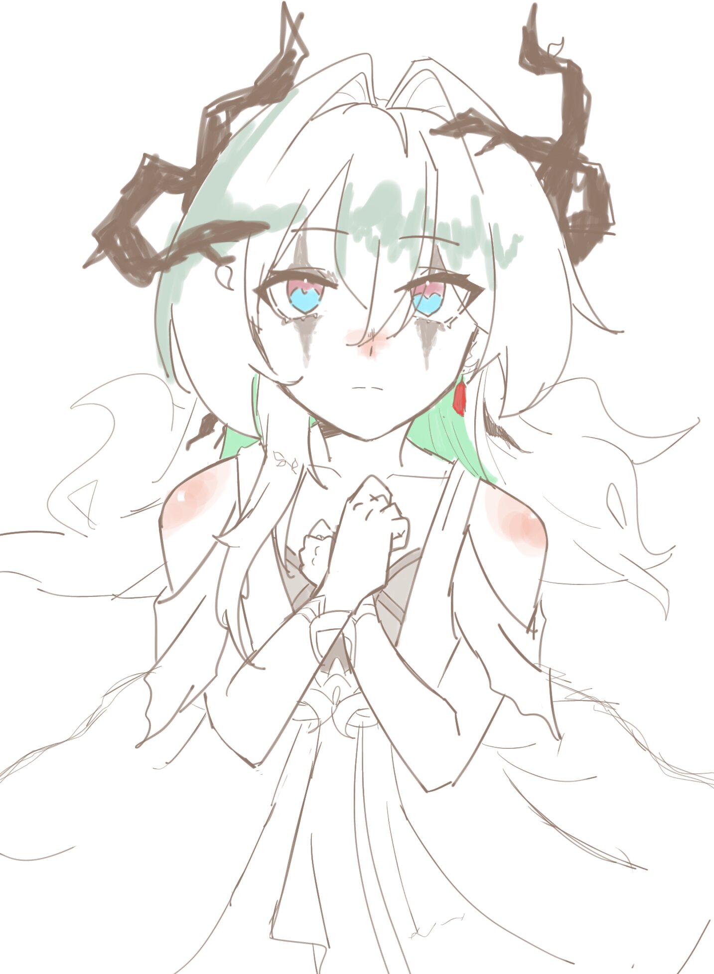 ふむ...って自分の顔凝視して動かなくなるから最初はなんだこいつみたいな感じの態度してたのがだんだん......、?ってほんとにどうしたんだみたいにはてな浮かべはじめる。そしたら急に金糸で拘束されては?ってむちゃ抵抗するけど解けるはずもなく何がしたいんだって連れてかれた先で着せ替え人形にされる回