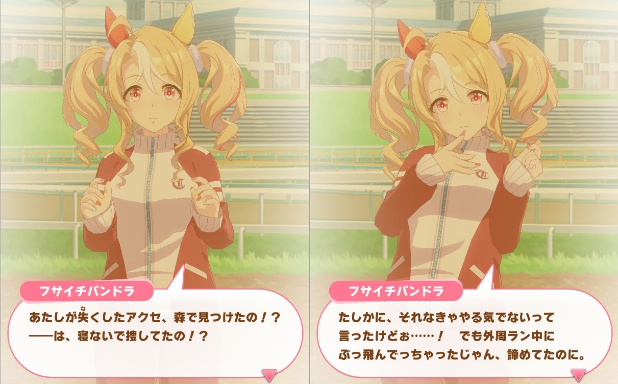 黙って知らない内に別れてて、パンドラは最初自分のおねだりから発生した流れって黙ってたからわからなかったんだけど肝心なレースの前で知っちゃうやつ