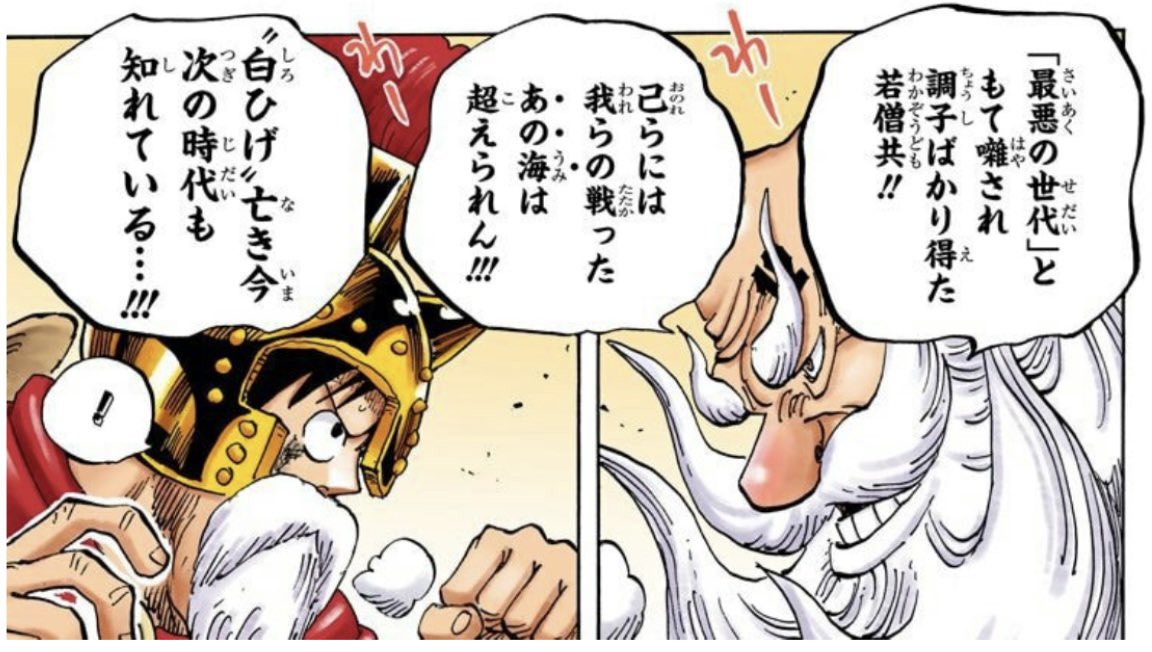 まああの海(ロックス、イム(存在は知らないだろうが)、ガープ、センゴク、ロジャー、ニューゲート)を知ってるなら、こうも言いたくなるわな