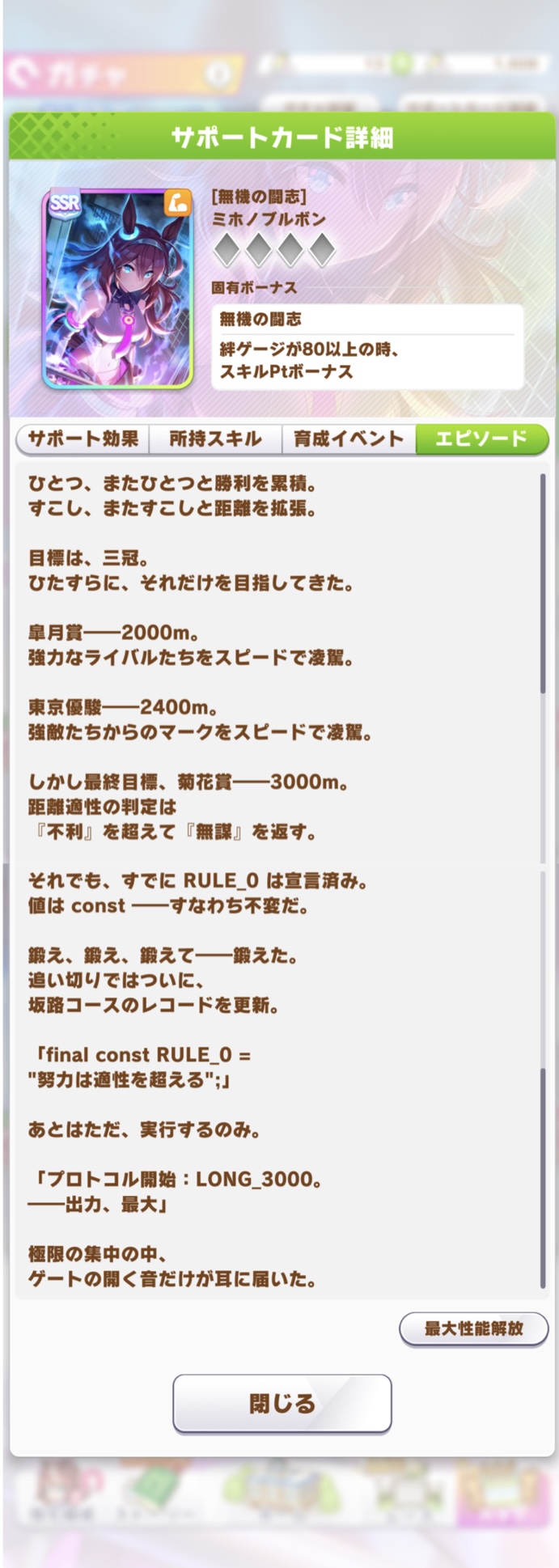 そもそも適性無いのにハードトレーニングで無理矢理仕上げて三冠取ろうとしてるキャラだから最も根性論でやってるキャラやで