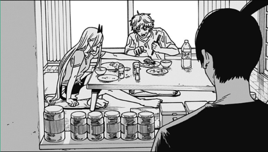 カーペットと畳んであった洗濯物がカレーまみれになったのを放置し、デンジとパワーは悪魔退治に突撃