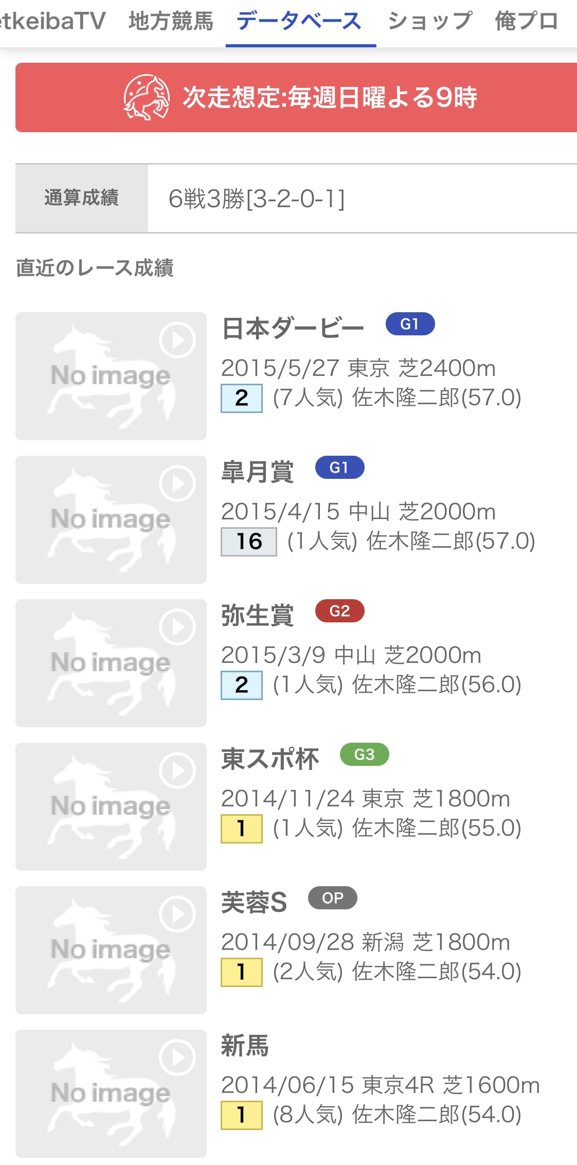 なんかこの時点だけだと既視感を覚える競争成績。ちなみにG1とれずに終わるタイプの既視感
