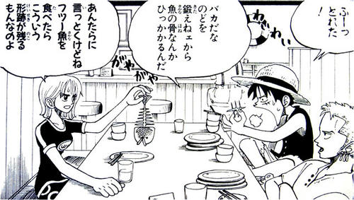 ロー(解剖したかの様な魚の残骸…。しかも手慣れている…。妙だな…。!あいつもしや医者の家系なのか…!?)