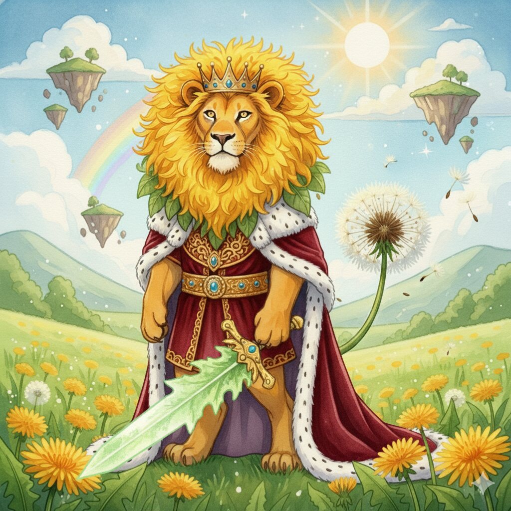 その花弁は鬣をもつ獅子の顔のように二重の色になっており、かつて滅びる前のブルーフルールの王宮でダンデライオン王に捧げられたものであるという