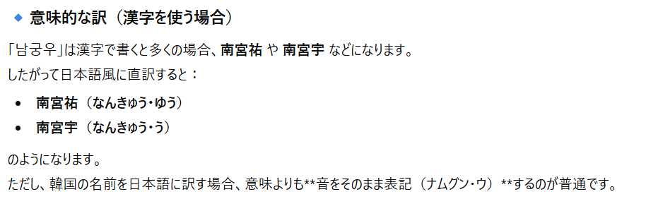 韓国版:남궁우(ナムグンウ)
