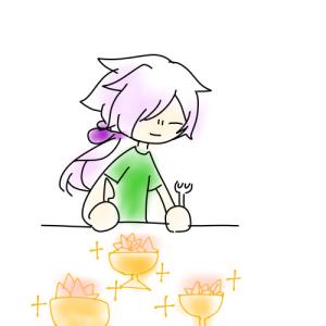 え?「ふふ…お腹いっぱい…なんか痛い気がする…」…………?気のせいだよ…。