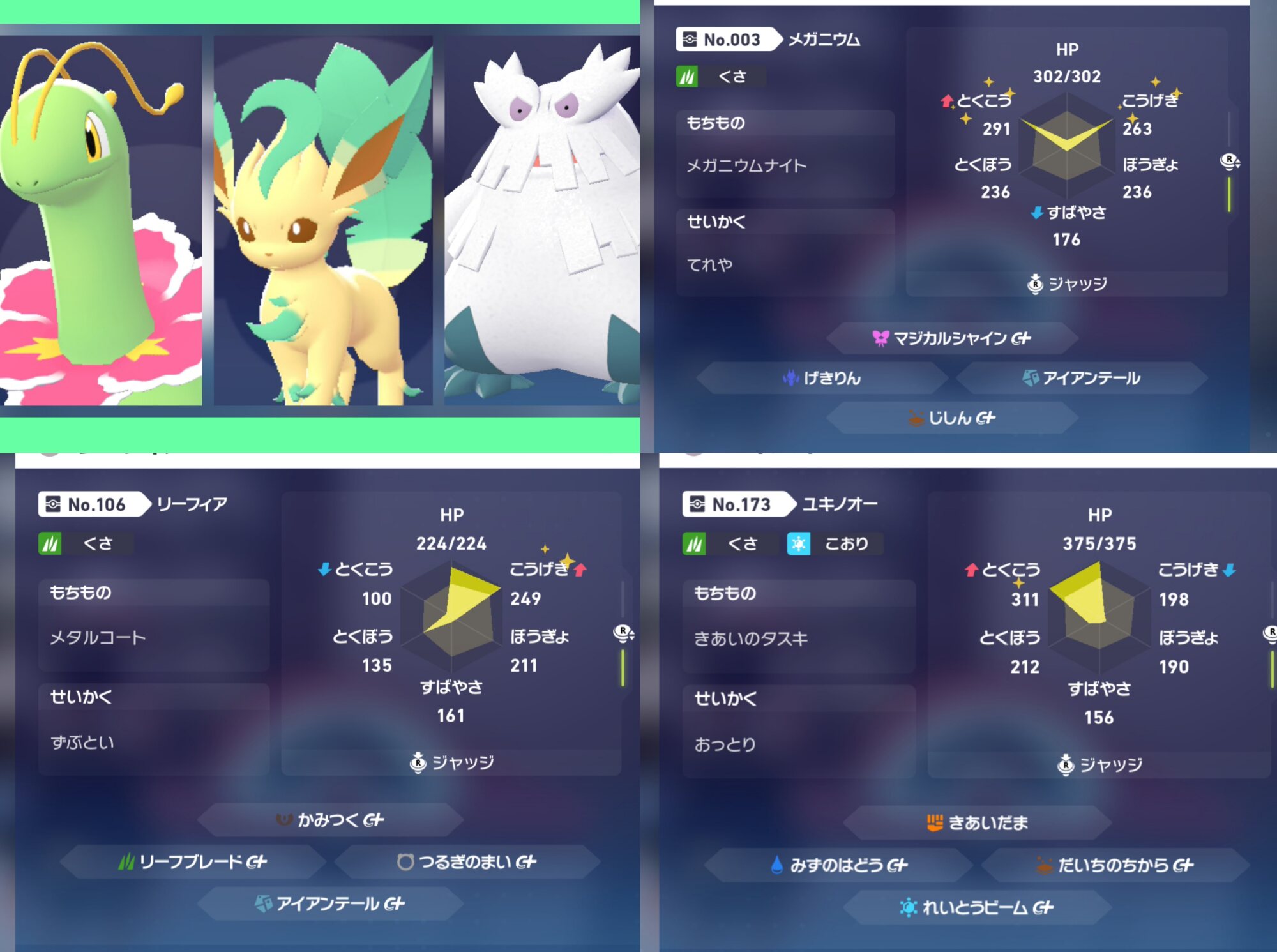 メガニウムもリーフィアも対ガブってそんな不利にはならないと思うからユキノオーまで入れるのは過剰な感じするなあ