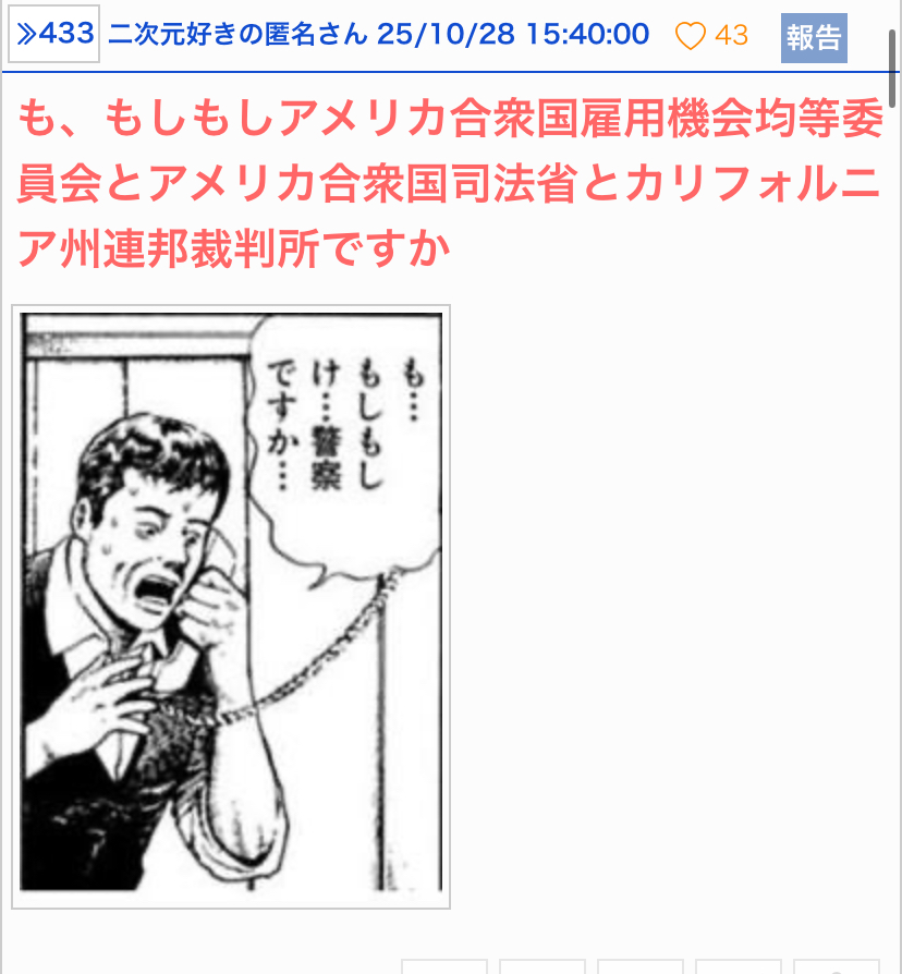 え…FBIと米国労働基準監督局ですか - 70二次元好きの匿名さん25/11/12(水) 14:24:02