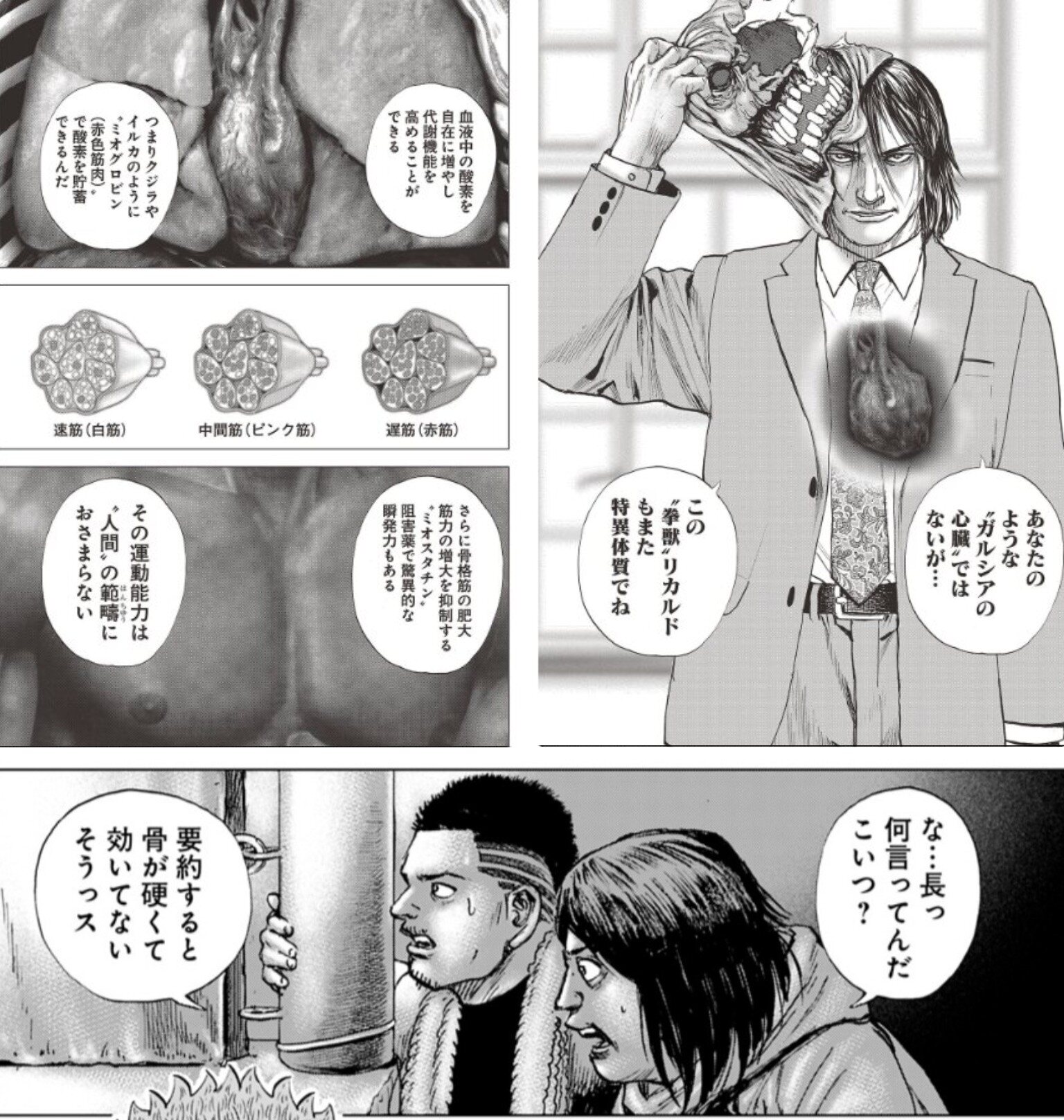 ちなみにミオスタチン阻害薬が単行本修正食らった理由に関しては単にミオスタチン阻害薬服用するだけだと副作用(腱が脆くなる等)生じるからとか諸説あるらしいよ