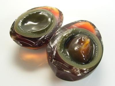 皮蛋か、なんか由緒ある作り方してるのは絶滅危惧種でほとんどの品はインスタントでケミカルな造り方してるらしいぞ
