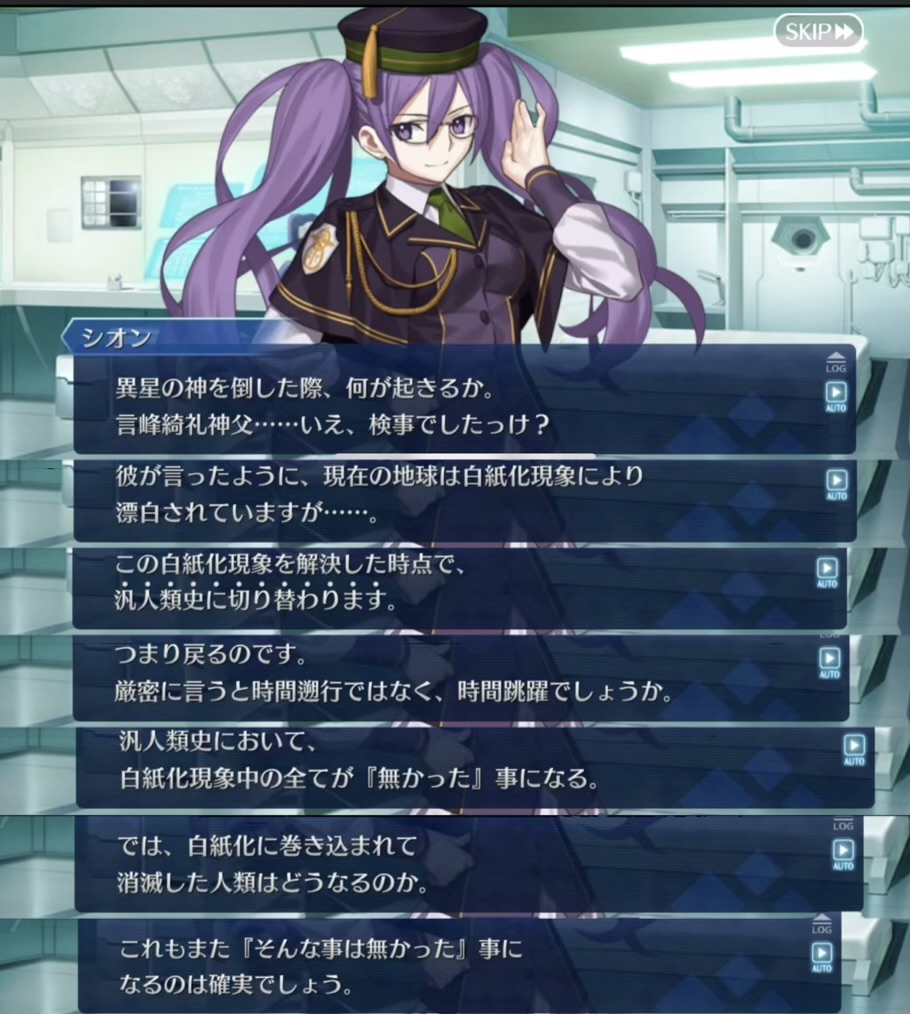 白紙化は発生した時点から汎人類史は白紙化世界に上書きされるただ白紙化世界での出来事は汎人類史とは関係ない別の出来事だから白紙化世界の上書きをなかったことにすれば上書き前の状態に完全に復元できるって感じか - 72二次元好きの匿名さん25/11/13(木) 01:03:34