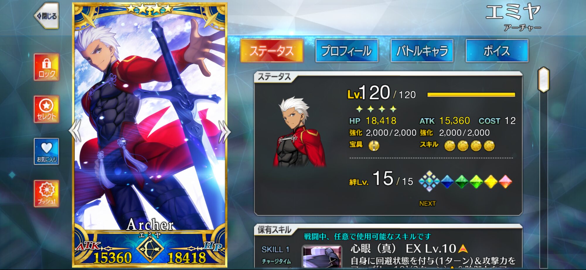 レベル120、宝具5、アペント全開放、クラススコア全開