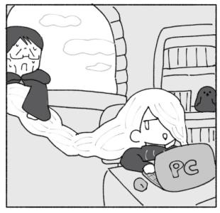 冥冥が暮らす高い塔は森の奥深くにそびえ立っており、塔を訪れるのは親代わりの魔女くらいなものでした