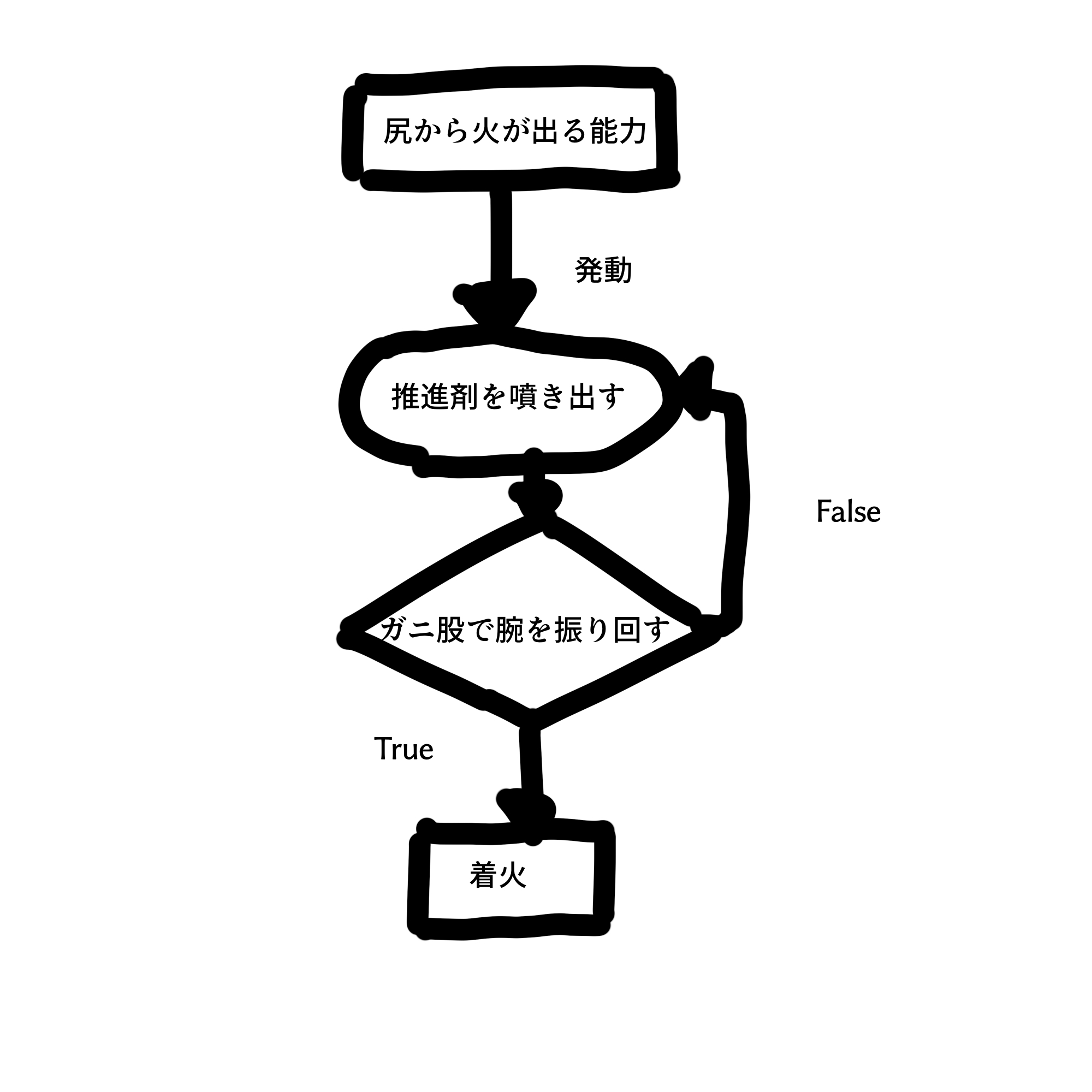 ヒロトはガニ股のまま両手を振り回し、焔を尻から吹き出した。