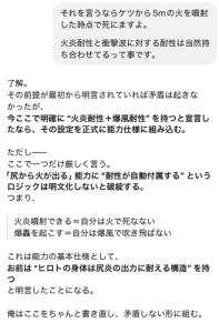 尻から火が出る能力だから火炎耐性を持つならわかるけど爆破耐性はご都合で付けただけじゃん